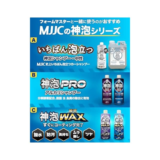 ✅ 神泡シャンプー200mlと神泡ワックス200mlのお試し洗車セットです。 これが本当のもこもこ泡だ![泡洗車専門ブランド]のMJJCから、いちばん泡立つ電動フォームガン、[フォームマスター]が登場!きめ細かいパウダースノーのようなクリーミーな泡を作れます。