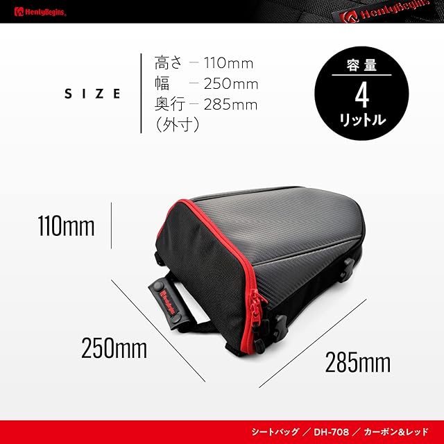 ヘンリービギンズ(Henly Begins) デイトナ バイク シートバッグ 4L 日帰りサイズ カーボン調 レッド イージーリングベルト付属 DH-708 95735