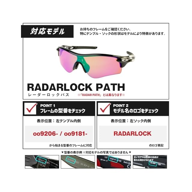 【対応モデル】フレーム内側にプリントされた型番がOO9206- / OO9181-からはじまるフレームに対応。