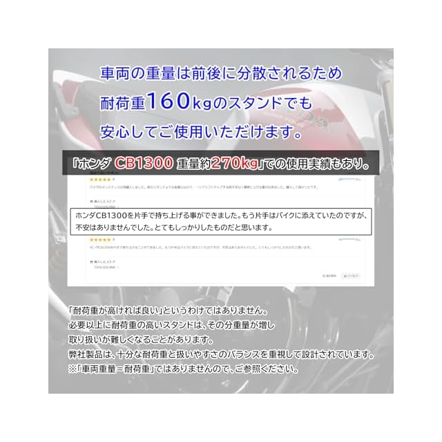 ※スイングアームが細く、車両重量が重い旧車などには使用する事が出来ません。