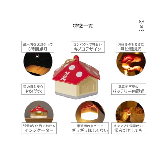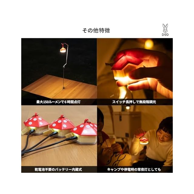 DOD(ディーオーディー) ミニキノコライト3個セット LEDランタン 3個セット USB充電式 小型 軽量 200ルーメン / 6-60時間 L3-046-RD