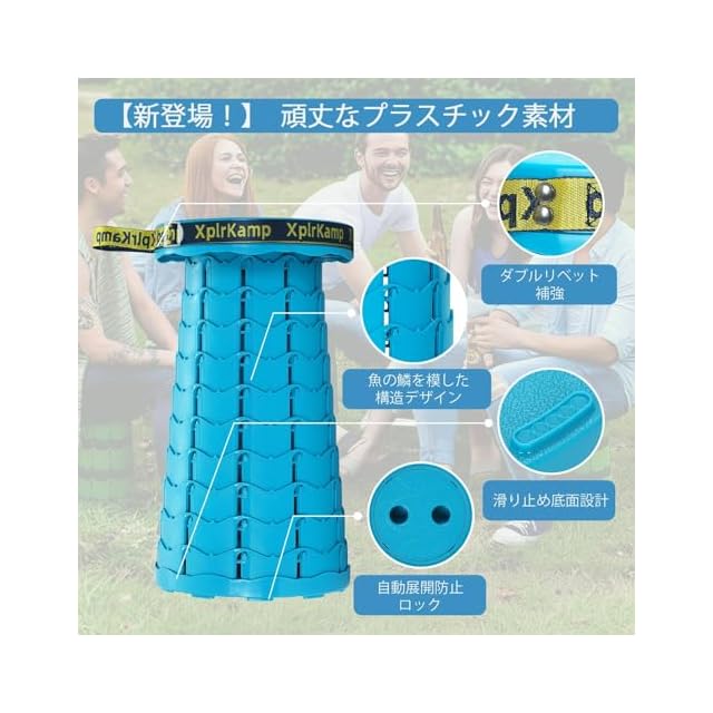 【安全ロック機構!突然の折りたたみを防止】独自の「防自開ロック」を搭載!展開時に「カチッ」と固定されるので、従来の携帯椅子のように座っている途中で折れる心配がありません。子供が乗せても、ガッチリ固定で安全をします。