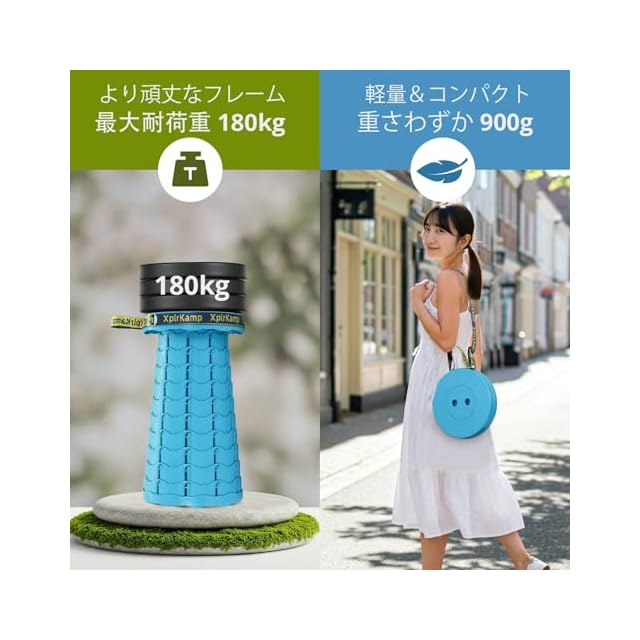 XplrKamp 折りたたみ椅子 伸縮式 超軽量900g 耐荷重180kg コンパクト 日本語マニュアル付き 持ち運び アウトドアチェア 防水 1秒開閉可能 10段階調整 ショルダーストラップ付き キャンプ/万博/釣り/夏祭り/花火大会/スポーツ観戦/バーベキュー/屋内屋外兼用 (2, レイクブルー)