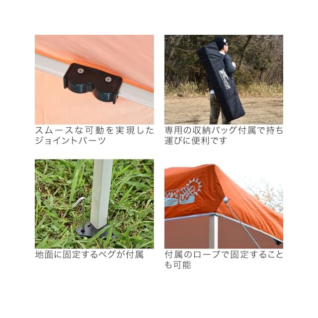 ✅【風抜けのベンチレーション】トップカバー上部ベンチレーションから 風が抜けることで風による転倒などに効果的です。✅【大人2人でカンタンに組み立て!】大人2人で持ち上げて広げるだけの簡単設営!フレームを組み立てたりする必要がないので初心者や女性も簡単に組み立てができます。