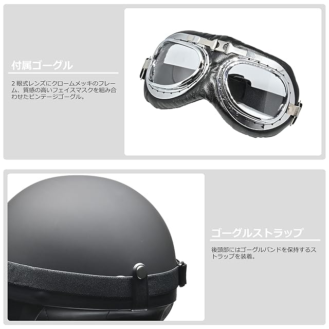 リード工業(LEAD) バイクヘルメット ハーフ CR-750 ビンテージ マットブラック フリー 57~60cm未満
