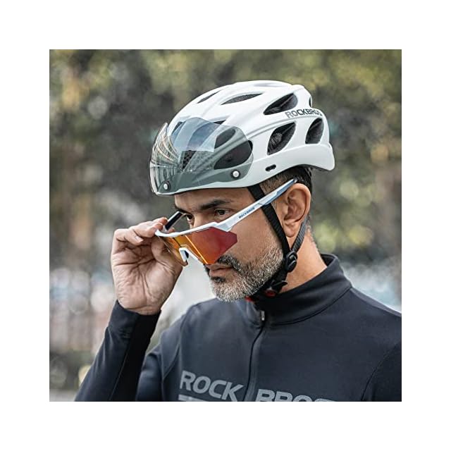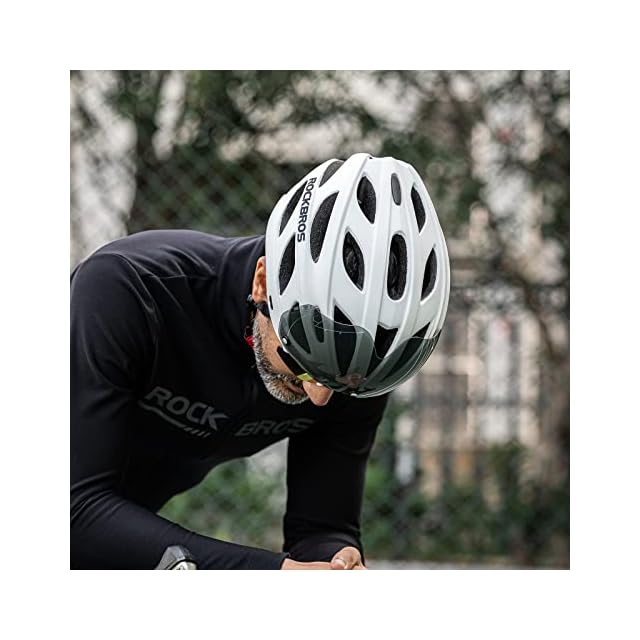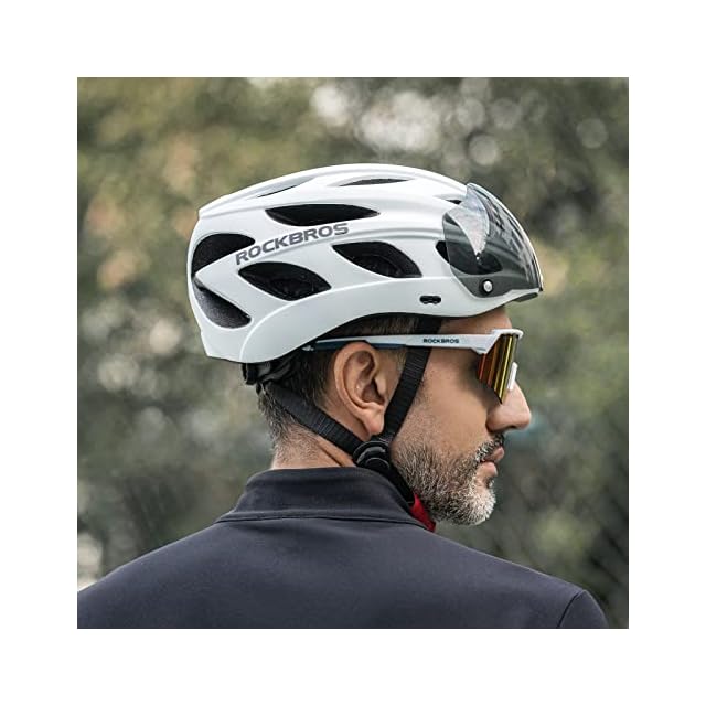 ROCKBROS(ロックブロス)自転車 ヘルメット 大人 ロードバイク CE認証 超軽量 高剛性 通気性 磁気ゴーグル サンシェード付き サイクリング 通勤 通学 サイズ調整可能 57-62cm レディース メンズ(ホワイト)