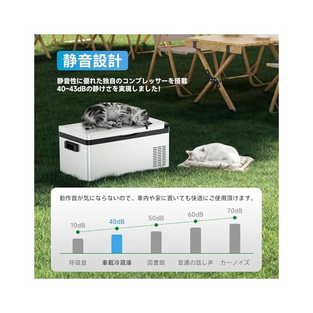 【急速冷凍 冷蔵庫・40分で-22 Degree Cまで・コンプレッサー式冷凍庫】本品は家庭用冷蔵庫と同じコンプレッサー式のポータブル冷蔵庫です。クーラーボックスは-22 Degree C~10 Degree Cに設定可能、40分で25 Degree Cから-22 Degree Cまで冷却できます(空運転テスト)。冷気リーク問題を防ぐため、車載冷蔵庫には磁気ふたを採用しました。また、本体に高品質断熱ポリウレタン樹脂を使用し、内壁四面に包んで保冷性能もとても優秀なコンプレッサー式 冷蔵庫です。電源を切れても数時間保冷が可能、車載冷蔵庫として、キャンプなど多様なシーンで使え、非常に便利です。