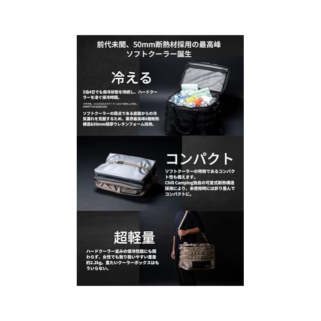 ChillCamping (チルキャンピング) クーラーボックス ソフトクーラー 保冷バッグ クーラーバッグ アウトドア キャンプ (ブラックPRO)