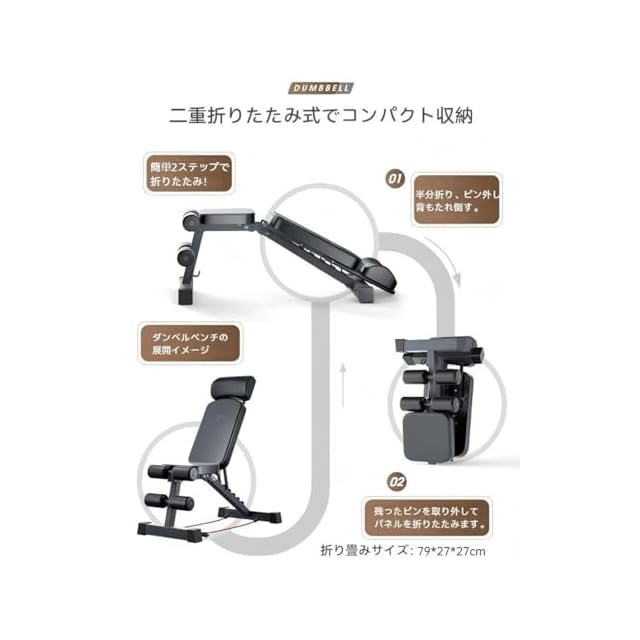 【折りたたみ式&省スペース|収納ラクラク】 使わないときは簡単に折りたたんで収納可能。コンパクト設計で、ワンルームや自宅ジム、狭いスペースでも置き場所に困りません。省スペースベンチで、フィットネス器具の整理整頓が簡単にできます。
