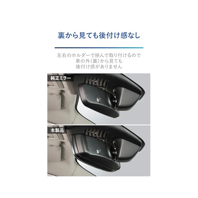 ●裏から見ても後付け感なし 左右のホルダーで挟んで取り付けるので車の外(裏)から見ても後付け感がありません。