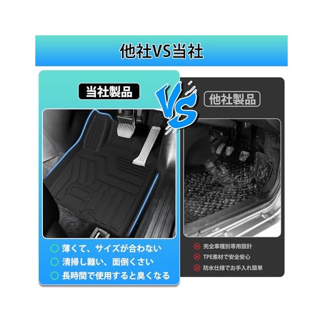 4.【車種専用設計】:こだわり車種専用設計のため、隙間なくフィット愛車を汚れから守る立体構造。アクセル・ブレーキペダルに干渉せずズレにくい。耐候性に優れ、長時間使用しても表面劣化が起こりません