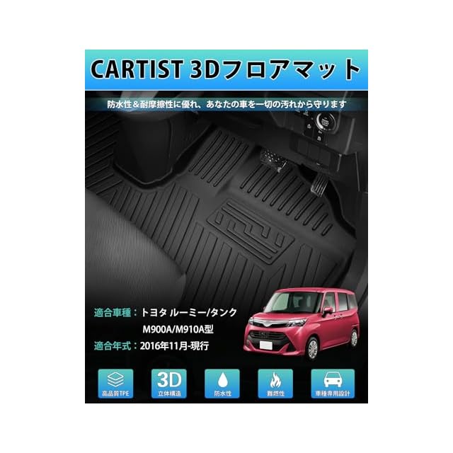 Cartist ルーミー タンク に適用 M900A M910A 3Dフロアマット 立体カーマット ROOMY TANK H28.11-現行 フロアマット 防水 滑り防止 セカンドマット 耐汚れ TPE素材 カスタムパーツ 車種専用設計 取付簡単 抗菌効果 内装 カー用品 2Pセット