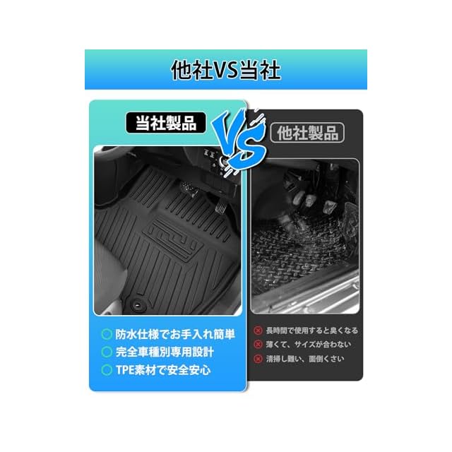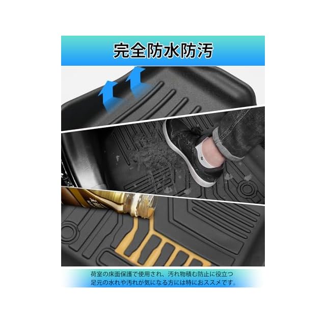 2.【高品質TPE素材】:摩擦性に優れたTPE樹脂素材を採用し、耐汚れと耐摩擦性を実現しました。3D立体構造のお掛けで車が運転している途中でも、飲み物などが溢れっても水やジュースなどはフロアマットの外への侵入を防止します。弊社のマットには防水性&耐摩擦性に優れた、変な匂いも無し、お手入れも楽々!