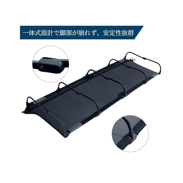 →【高品質のアウトドアベッド】①、表面は丈夫な600Dポリエステル素材を使用されて、沈み感もなく快適に寝ることができます。 ②、フレームは頑丈なスチール製で、ジョイントの嫌なきしみ音がしなく、金具類の破損もしない。