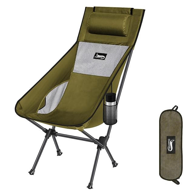 DesertFox アウトドアチェア 折りたたみ 枕付き 超軽量 【独自開発のカップホルダー】 【耐荷重150kg】 キャンプ椅子 コンパクト イス ハイバック 椅子 収納袋付属 お釣り 登山 携帯便利 0066 (グリーン, Large)
