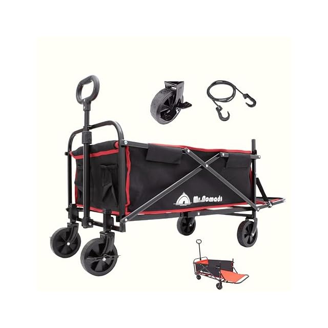 MR. NOMADS 【ラグビー日本代表使用メーカー】 キャリーワゴン キャリーカート 【ブレーキ付】 軽量 大容量 130L可能 耐荷重100kg 長い荷物対応 コンパクト ワンタッチ収納 高耐久 4輪 こども乗せれる 折り畳み アウトドアワゴン キャンプワゴン カート 子供 ペット散歩 釣り 撮影 (KW006 BlackRed) リアゲート付き