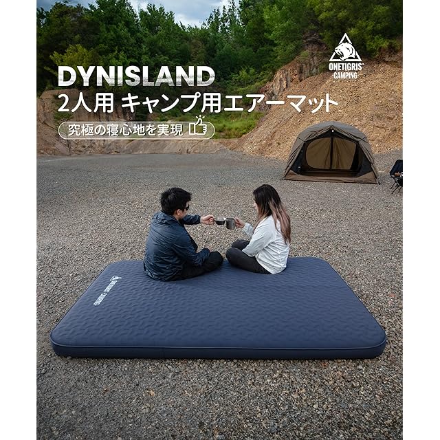 OneTigris DYNISLAND エアーマット 60秒自動膨張 2人用 インフレーターベッド 10cm極厚 高R値 高反発 耐荷重200kg 無臭 快適 静音 滑り止め加工 オールシーズン 201*132cm ポンプ機能収納袋付き キャンプ/ツーリング/レジャー/車中泊用
