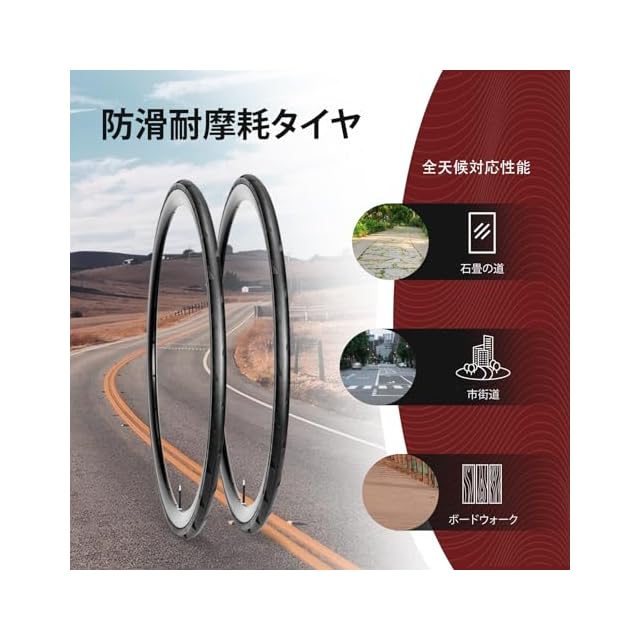 注:パッケージ内容は700×25C折りたたみ自転車タイヤ1本です。前後輪どちらにも使用可能です。取り付け前に1~2日ほど展開して平らな場所に置いてください。購入前に詳細とサイズを必ずご確認ください。