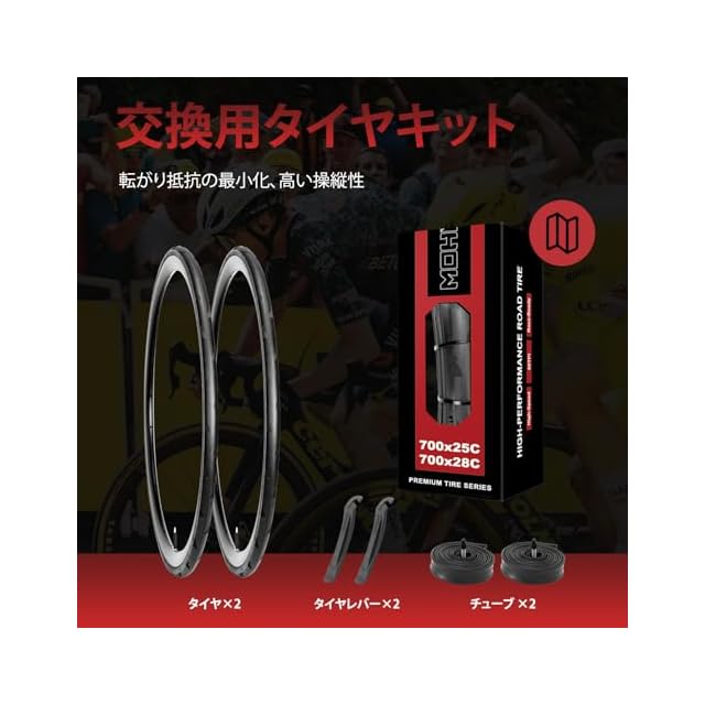 MOHEGIA 700×28C ロードバイク 自転車 タイヤ: 2組セット 60TPI 700C 28C クロスバイク 交換用タイヤ、チューブ、タイヤレバー - 安定性 耐久性 街乗り通勤 サイクリング
