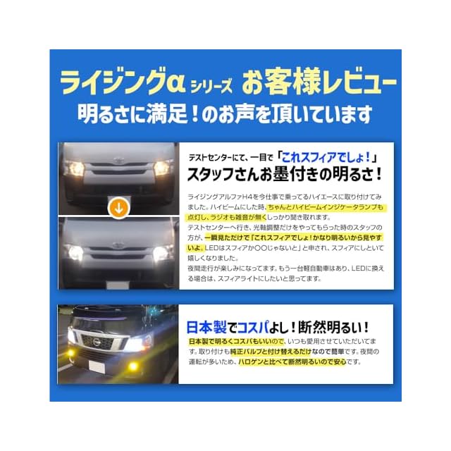 スフィアライト RIZINGα HB3 HB4 HIR2 LED ヘッドライト 6000K ホワイト 12V 3600lm 車検対応 日本製 ポン付け バルブ ノイズ対策済 フォグ ライジングアルファ SPHERELIGHT SRACHB060-02