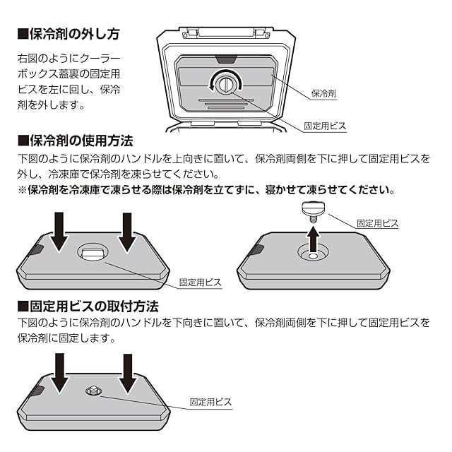 材質:本体/ポリエチレン・ABS樹脂 パッキン/シリコン 断熱材/発泡ポリウレタン 保冷剤/ポリエチレン・ポリアクリル酸ナトリウム