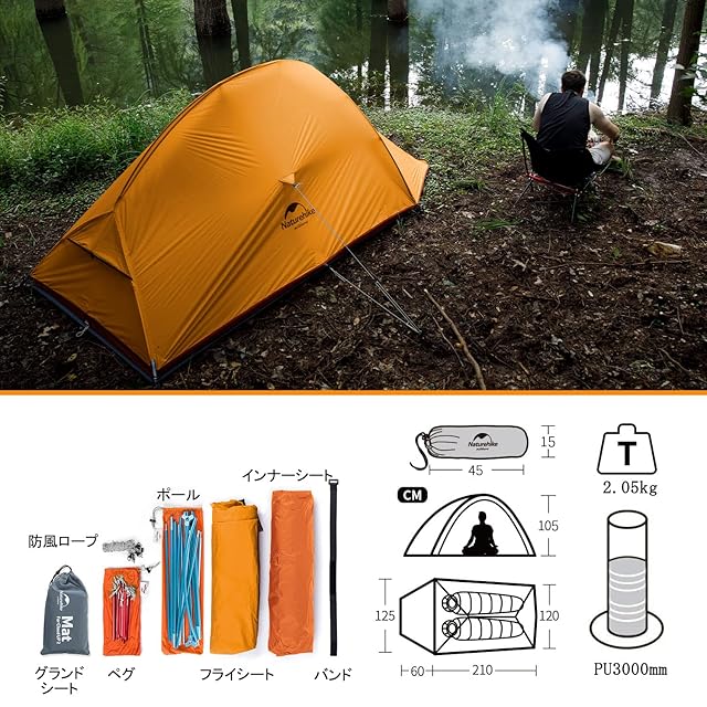 Naturehike公式ショップ テント 2人用 軽量 ソロキャンプ 登山 自立式 前室付きダブルウォール アウトドア 専用グランドシート付き 耐水圧3000㎜/4000㎜ 防風 収納袋付き コンパクト 3シーズン 防災用 キャンピング