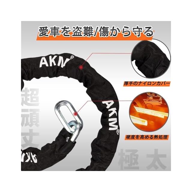 AKM バイクロック【高い耐切断性】極太チェーンロック φ(直径)12mm×2000mm U字ロック付き 自転車原付オートバイク