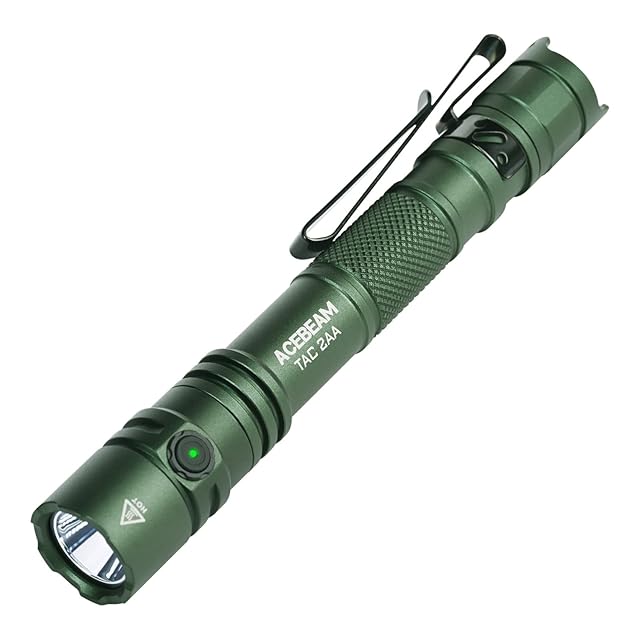 ACEBEAM TAC 2AA 懐中電灯 単三電池に対応 1600ルーメン 超高輝度 181メートル 長距離 小型 ペンライト 電池監視 EDC & 戦術デュアルモード 強力 LEDフラッシュライト 2メートル防水 防災 停電対策 緊急 護身用 ハンディライト ANSI規格準拠 (緑-6500K-1600ルーメン)