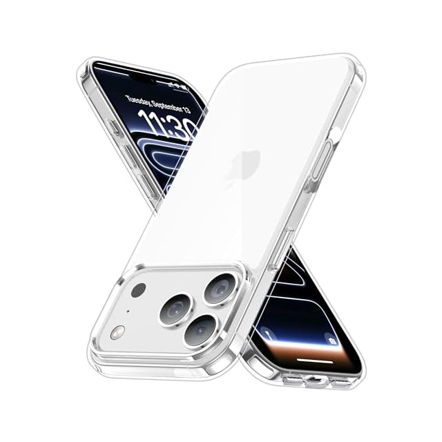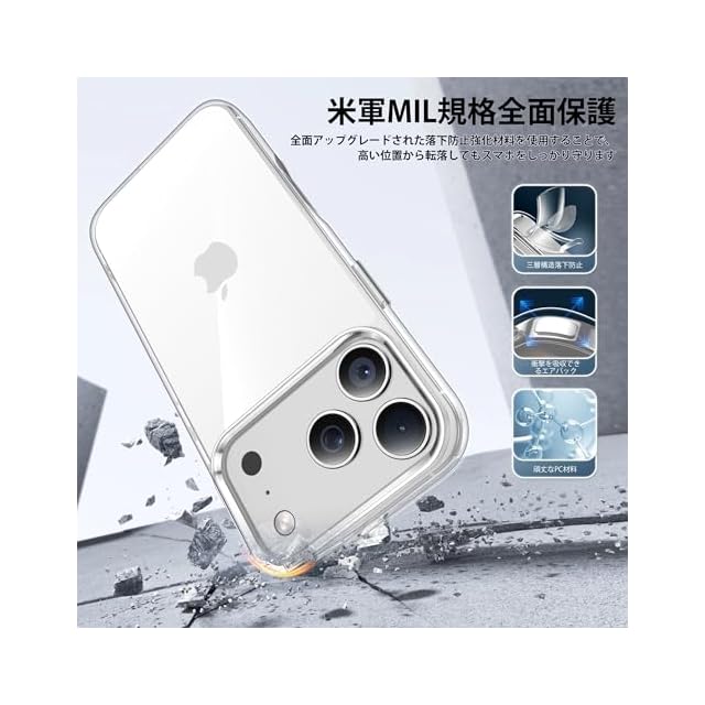 JUSTCOOL for iPhone 17 Pro 用 ケース クリア アイフォン17 プロ用 アイホン17pro 米軍規格 耐衝撃 指紋防止 落下防止 黄ばみ防止 耐久性 SGS認証 PC背面 ワイヤレス充電対応 ストラップホール付き あいふぉん 17 ぷろ用 カバー 6.3インチ 透明