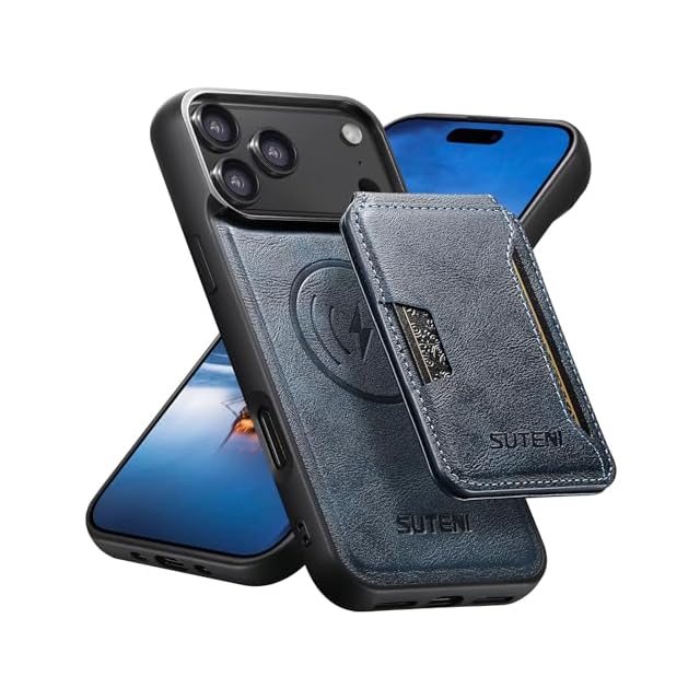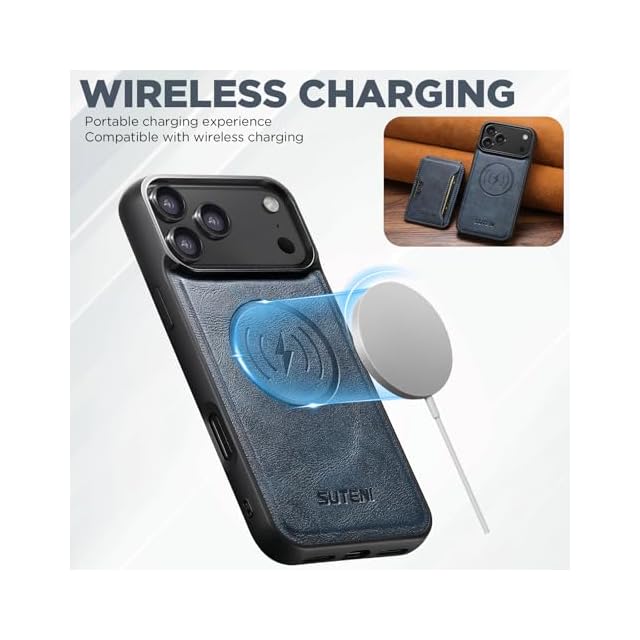 JCGOOD iPhone 17 Pro ケース MagSafe対応 ワイヤレス充電 背面カードケース付き 分離式 カード収納 スタンド機能 磁気吸着 取り外し可能 革 レザー スマホケース 耐衝撃保護 携帯ケース アイホン17プロ用 ブルー