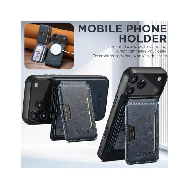【操作性を考え抜いた安心設計】背面カード入れのiPhoneケース:カードケースと携帯ケースは磁気吸着接着で、自由に分解することができます。カードケースの角度を調整することで、マルチアングルのスタンド機能をサポートすることができます。iphoneのケースを装着したまま電源ボタン、音量ボタン、写真を撮る、充電等の機能が利用可能です。大切なアイフォン を傷やほこりから保護してくれます。