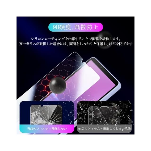 【傷防止と飛散防止】日本旭硝子素材を採用、表面強度指数は9Hで、鍵や小砂などの摩損、傷からスクリーンを守り、ポケットに入れる時は安心できます。