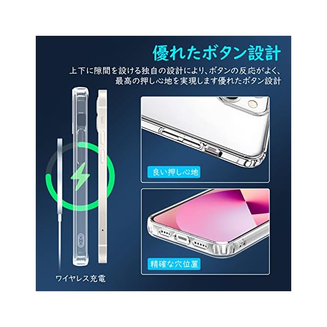【優れた精密性】iPhone 13用ケース薄くて丈夫で、程よいグリップ感があり、スマホ本体の持つスリムさをできる限り損なわないよう設計している背面クリアケースです。本体にぴったりフィイットするよう設計し、精巧をきわめていることの孔位で、充電するやイヤホンで音楽を聴くことにも支障なく使用でき、携帯へ負荷を掛けずに楽々装着できます。