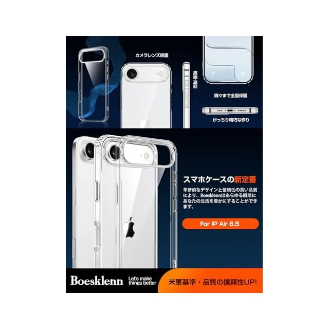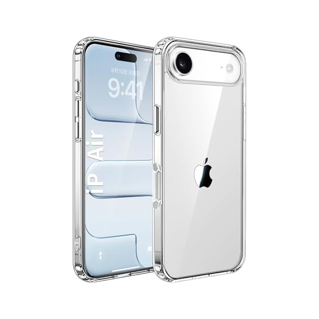 対応 iPhone Air ケース クリア 耐衝撃 MIL規格 軍用認証 高光沢 黄変防止 SGSテスト済み ワイヤレス充電可能 軽量 スリム設計 衝撃吸収 TPU+PC強化 17 Air 用 透明ケース (6.5インチ)