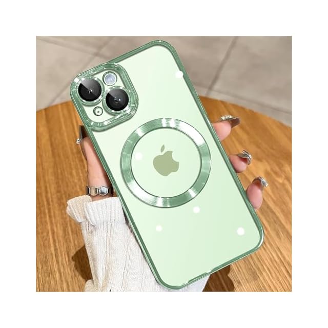 Azure【本体の色・人気五色】JUESHITUO iPhone 15 ケース MagSafe充電対応 一体型レンズ保護 人気 韓国 クリア 耐衝撃 米軍MIL規格 耐久性 SGS認証 カバー ストラップホール付き アイフォン15用 カバー 6.1 インチ ケース(グリーン)
