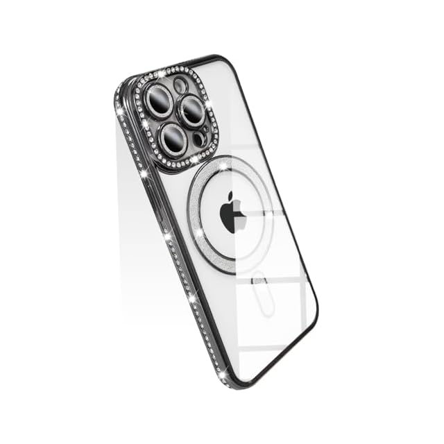 JOOBOY スマホケース 対応 iPhone11 Pro クリア ケース 透明 メッキ加工 Magsafe対応 きらきら ブリンブリン 衝撃吸収 かわいい キラキラ 女性 人気 キャラクター ワイヤレス充電対応 おしゃれ ストラップホール付き アイフォン11プロ 携帯カバー (ブラック, iPhone11 Pro)
