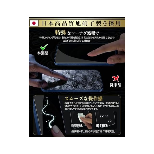 【高品質素材!指紋防止&撥水撥油!】 指紋を防ぎ、滑らかで快適な操作感を実現。特殊コーティング処理で、指紋の付着を軽減、日常生活での汚れや油脂などもティッシュなどで軽く拭くだけでとれます。元々の画質が損なわれません。