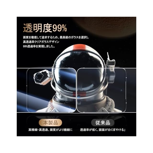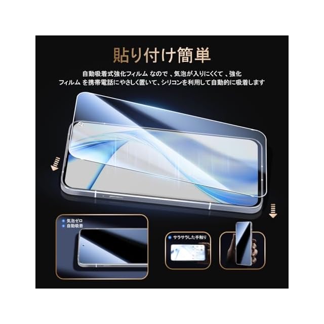 極薄・クリア・感度が高い】保護フィルムは、通常の液晶保護フィルムよりも高級なガラスを採用して作られており、高精細で透明な保護フィルムが最高な解像度があることを確保し、透明度も高くて93%に達し、高透明度で高精細な見る体験を現実しました。【指紋防止、撥水、油防止】保護フィルムは真空電気メッキプロセスを使って、AF分子防油層を備えて、非常に滑らか、耐水性も高くて、耐油性にも優れます。油や指紋が付着しにくいので、汚れがあれば、サッと拭くだけできれいになります。指触りもスッキリ、画面操作もストレスなくて、とても快適に使いいただけます。一気に液晶画面の油、ホコリ、指紋の付着、キズ、磨耗などの悩みを解決しました。