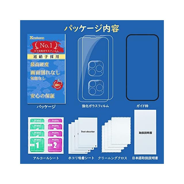 Xeokone iPhone13 Pro Max ガラスフィルム 旭硝子製 iPhone13Pro Max カメラフィルム【2+2】 硬度9H ガイド枠 高透過率 気泡防止 飛散防止 耐衝撃 6.7インチ