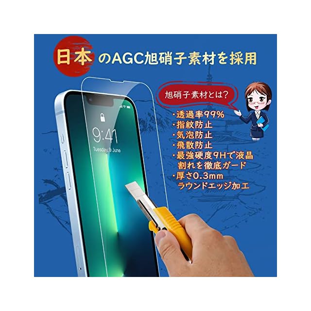 【硬度9H・日本旭硝子製】日本製素材旭硝子製を採用しております、高品質な素材で衝撃を緩和し画面の破損を最低限まで抑えます。高品質製品の製作プロセスに厳しく基づき、ガラス420°高温強化時間6時間、め七つのステップを経てスマホに完璧的にフィットした製品を製造されます。9H硬度で、ハードコーティング技術により、衝撃を緩和し画面の破損を最低限まで抑え、すり傷や指紋からもスクリーンをしっかりと保護します。本体の端までフルカバーし液晶画面をしかっりと保護します。縁にかかる衝撃が軽滅しガラスフィルムの耐久性にも向上させます!