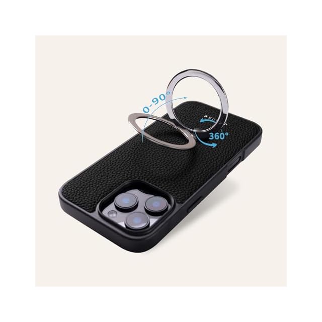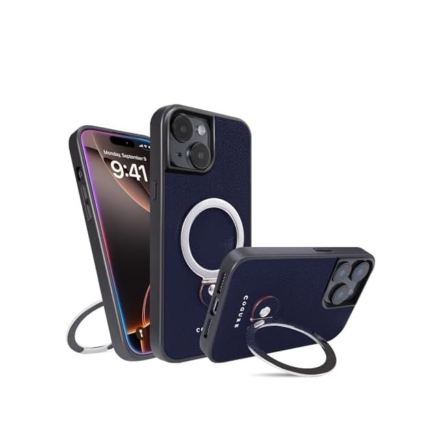 COGURE コグレ iPhone15Plus ケース 本革 リング付き 360度回転 スタンド機能 縦横両対応 MagSafe対応 マグネット搭載 ワイアレス充電 スマホケース 耐衝撃 シンプル おしゃれ ギフトボックス付き COPMS ネイビー