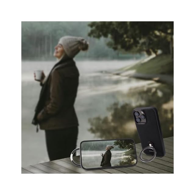 【360度回転リングスタンド】ケース背面に備えられたリングスタンドは、360度自在に回転し、縦向き・横向きいずれの使用シーンにも最適な角度を実現します。動画の視聴やビデオ通話はもちろん、レシピを見ながらの調理時など、さまざまな場面でその利便性を発揮。スタンド一体型のスマートなデザインにより、持ち運びの際もかさばらず、快適にご使用いただけます。